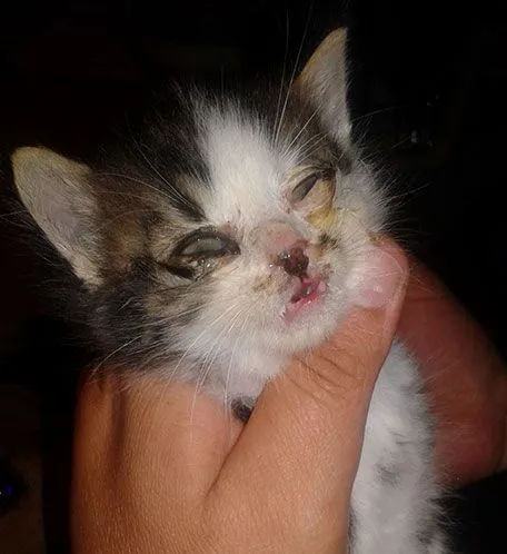 Einer von jährlich tausenden Fällen in Österreich: krankes Streunerkatzenbaby von Montag dieser Woche (18.06.2018) wird am Tierschutzhof Pfotenhilfe behandelt. Copyright: Pfotenhilfe