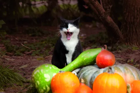 Katzen haben an sich kein Problem mit Halloween, doch man darf nicht außer Acht lassen, dass es sich bei Samtpfoten von Natur aus um extrem neugierige Wesen handelt. Darum sollten sie die ausgehöhlten Kürbisköpfe, sofern sie mit brennenden Kerzen versehen wurden, nie unbeaufsichtigt lassen. Entweder platzieren Sie Ihre schaurigen Kürbisköpfe außerhalb der Reichweite von Katzen, oder Sie entscheiden sich für ungefährliche LED-Kerzen. Außerdem machen Sie Ihren Katzen auch eine große Freude, wenn Sie ihnen einen großen ausgehöhlten Kürbis zum Spielen zur Verfügung stellen. Bedenken Sie nur, dass die Kürbisse bei Zimmertemperaturen nicht sehr lange halten und spätestens nach einer Woche entsorgt werden müssen, um Schimmelbildung zu verhindern.