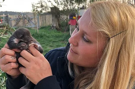 Pfotenhilfe-Geschäftsführerin Johanna Stadler mit den zwei Marderbabys