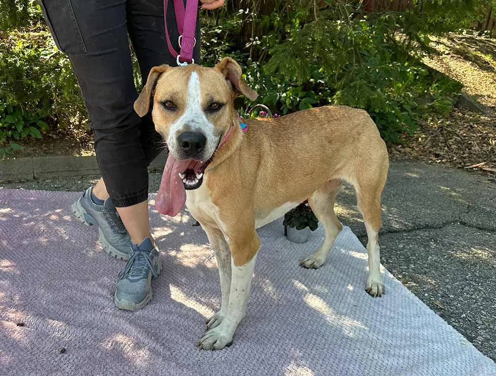 Die fröhliche Mischlingshündin Lucy wurde 2022 geboren.