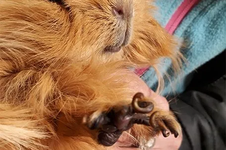 "Die extrem langen, eingeringelten Krallen und das verfilzte Fell des Meerschweinchens lassen deutlich darauf schließen, dass das Tier schon lange zur Last geworden ist und keiner sich mehr darum kümmern wollte", erklärt Stadler. Immer noch werden in vielen Tierhandlungen Tiere als Ware zum Verkauf angeboten, was oft zu Spontankäufen führt. Der Käufer ist über die Bedürfnisse, Lebenserwartung und den Pflegeaufwand des erstandenen Produkts kaum bis nicht informiert, hat meist andere Erwartungen an das Tier als dieses erfüllen kann und hat dieses nach kurzer Zeit schlicht und einfach satt. "Kleinsäugetiere sind keineswegs als Kuscheltiere geeignet, wollen nicht in einem Käfig gehalten werden, weil dieser keineswegs ihre artspezifischen Bedürfnisse an einen Lebensraum erfüllen kann, und brauchen sehr viel Pflege, immer frisches Futter und saubere, trockene Einstreu. Die Haltungskosten sind hoch, die Pflegebedürfnisse sehr intensiv und die Befriedigung der meist kindlichen Bedürfnisse am Tier so gut wie nicht erfüllt. Überdies ist die Einzelhaltung ohnehin gesetzlich verboten", erörtet Stadler.