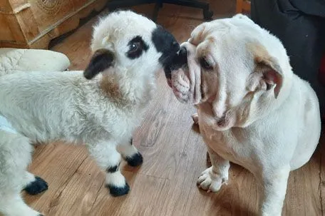 Lämmer werden mit Flascherl aufgezogen und auch von Hündin Rosi rührend umsorgt