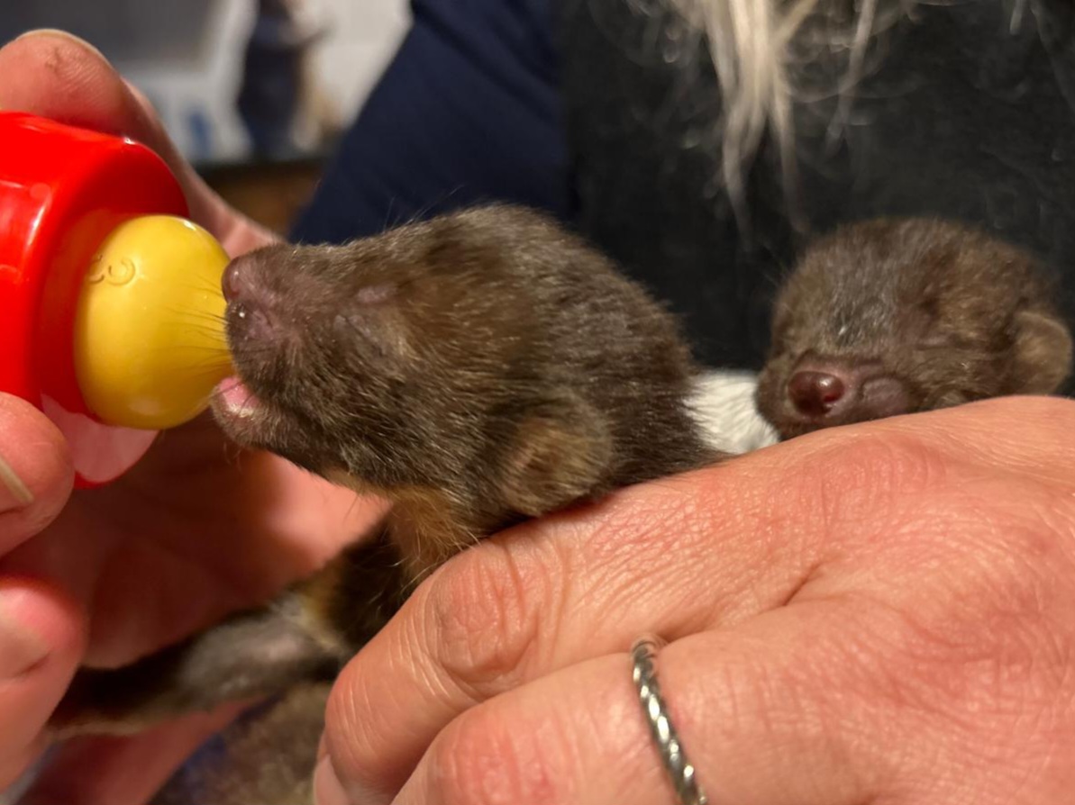 Mattsee, 10.4.2025 – Bei einem Hausabriss in Mattsee bemerkten die Arbeiter ein flüchtendes Tier. Aber erst am nächsten Tag dämmerte ihnen, dass das wohl eine Mardermutter gewesen sein muss. Denn sie entdeckten ein Nest mit vier hilflosen, herzzerreißend schreienden Marderbabys mit noch geschlossenen Augen. Die Finder wandten sich sofort an den nahen Tierschutzhof Pfotenhilfe, wo die Waisen aufgenommen wurden und jetzt rund um die Uhr versorgt werden.