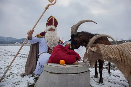 Foto: Der Nikolaus holt auch für die neugierigen Tiere Überraschungen aus dem Sack. Copyright: Pfotenhilfe/Sonja Müllner