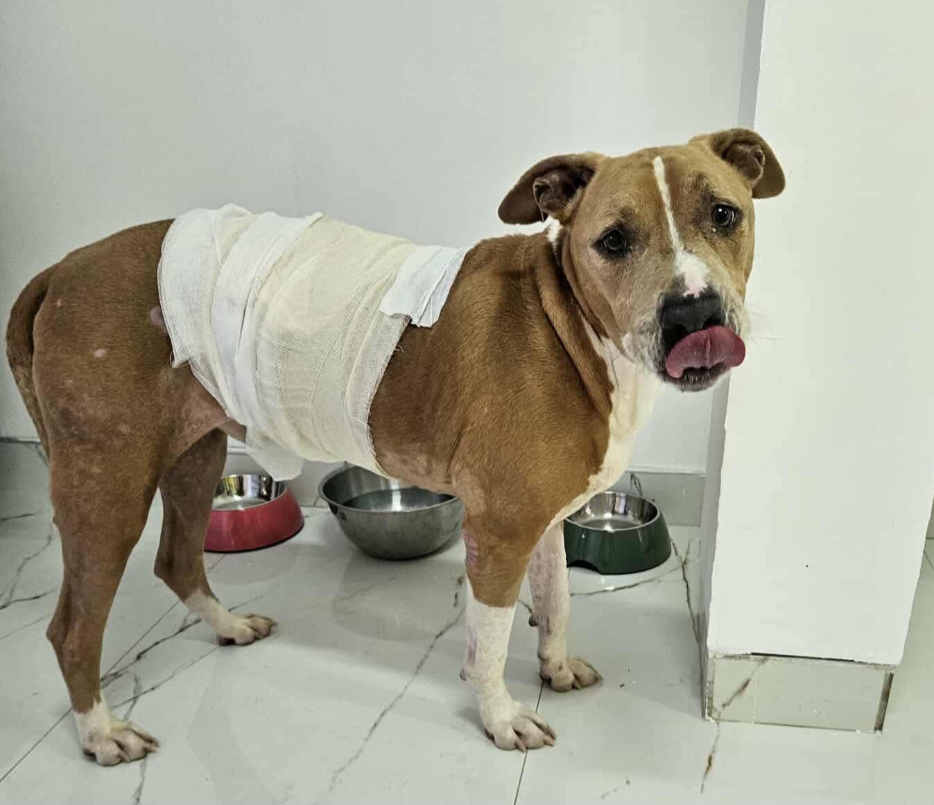 Lochen/Serbien, 4.11.2025 – Die Bilder sind so furchtbar, dass mehrere Tierärzte meinten, dass man diesem armen Hund nicht mehr helfen könne. Der Mischlingsrüde „Richie“ (Name geändert) wurde im Sommer von Tierfreunden in Serbien schwerst verletzt auf der Straße gefunden und sofort zur Erstversorgung zum Tierarzt gebracht, der ihn eigentlich erlösen wollte. „Der Anblick war auch wirklich kaum zu ertragen“, ist Pfotenhilfe-Geschäftsführerin Johanna Stadler entsetzt. „Erst ein weiterer Tierarzt hat sich dann bereit erklärt, ‚Richies‘ Leben zu retten zu versuchen – trotz des extremen Verletzungsgrades. Und dieser war erfolgreich, was für mich an ein Wunder grenzt. Ich bin wirklich sehr froh und erleichtert über den Heilungsfortschritt. Aber was ihm furchtbares zugestoßen ist, bleibt weiterhin ein Rätsel. Möglicherweise hat jemand eine ätzende Flüssigkeit auf ihn geschüttet.“