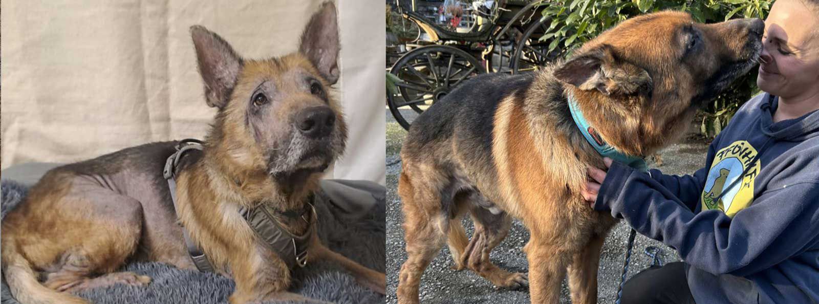 Braunau, 1.4.2025 – Der Fall des Schäferhunds Enzo, der seinem Halter in Braunau behördlich abgenommen wurde, hat die Gemüter erhitzt. Zu Recht, denn der leidgeplagte Rüde im besten Alter hatte wegen stark juckender Räude kaum mehr Fell sowie schmerzhafte Arthrosen und war stark abgemagert. Trotzdem hat ihn sein Halter nicht einmal nach behördlicher Aufforderung zum Tierarzt gebracht. Auf dem Tierschutzhof Pfotenhilfe wurde Enzo in den letzten Monaten unter tierärztlicher Anleitung gesundgepflegt. Zur Vorgeschichte.