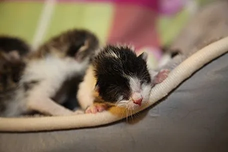 Foto: Erst zwei Tage alte ausgesetzte Kätzchen mit noch geschlossenen Augen. Copyright: Pfotenhilfe/Sonja Müllner