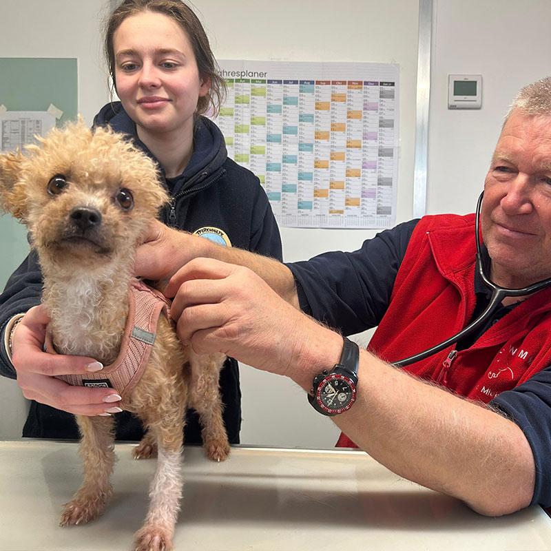 Sorgfältig untersucht der Tierarzt die  kleine Kämpferin.