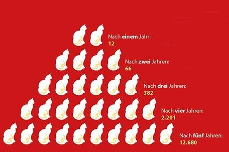 Mit viel Geduld werden die Streunerkatzen eingefangen und zum Tierarzt gebracht. Dort werden sie kastriert, medizinisch versorgt, gechipt und registriert. Danach lässt man sie im Fanggebiet wieder frei. Damit erhöhen sich nicht nur ihre Überlebenschancen, sondern sie tragen fortan auch nicht mehr zum stetigen Wachstum der Population in ihrem Gebiet bei. Wer einen Blick auf die Katzenpyramide (links) wirft, der ahnt, wie viel die Kastration von nur zwei Katzen bewirken kann!