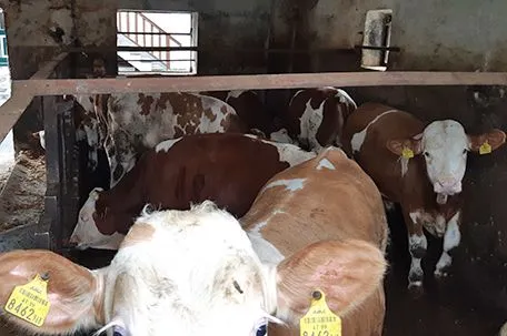 Jeweils mehrere Rinder in winzigen, verdreckten, finsteren Stallabteilen so eng zusammengepfercht, dass sie sich kaum umdrehen können.