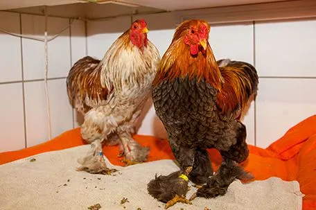 Die beringten Zwerghähne gehören der Rasse Brahma an und die Nummern sind von einem deutschen Züchter, weshalb die Pfotenhilfe auch grenzüberschreitend bei Zuchtverbänden recherchiert, wem die Tiere gehören. Die armen Kerle mussten zunächst erstversorgt und dann von jeder Menge Parasiten befreit werden. Pfotenhilfe-Geschäftsführerin Johanna Stadler: "Leider kommt es immer häufiger vor, dass Hähne bei uns abgegeben oder gar ausgesetzt werden. Das Hauptproblem sind einerseits Kleintierzüchterausstellungen, wo es zu unüberlegten Spontankäufen kommt.